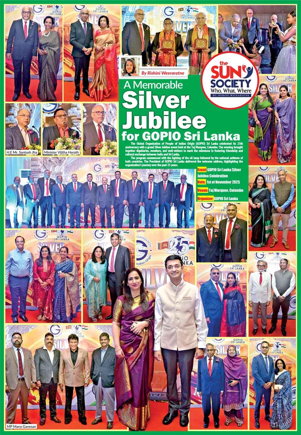 The Global Organisation of People of Indian Origin (GOPIO) Sri Lanka celebrated its 25th anniversary with a grand Silver Jubilee event held at the Taj Marquee, Colombo. The evening brought together dignitaries, members, and well-wishers to mark the milestone in fostering friendship and cultural exchange between India and Sri Lanka.