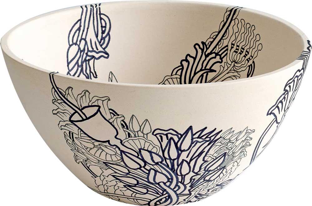 Chandraguptha Thenuwara, 2025, Neo-Glitch Arabesque, Ink on Ceramic Bowl, 26 x 13 cm