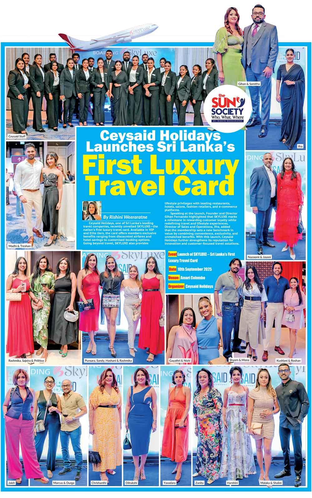 Speaking at the launch, Founder and Director Gihan Fernando highlighted that SKYLUXE marks a milestone in rewarding customer loyalty while redefining travel and lifestyle experiences. Director of Sales and Operations, Ifra, added that the membership sets a new benchmark in value by combining convenience, exclusivity, and unmatched benefits. With this launch, Ceysaid Holidays further strengthens its reputation for innovation and customer-focused travel solutions.