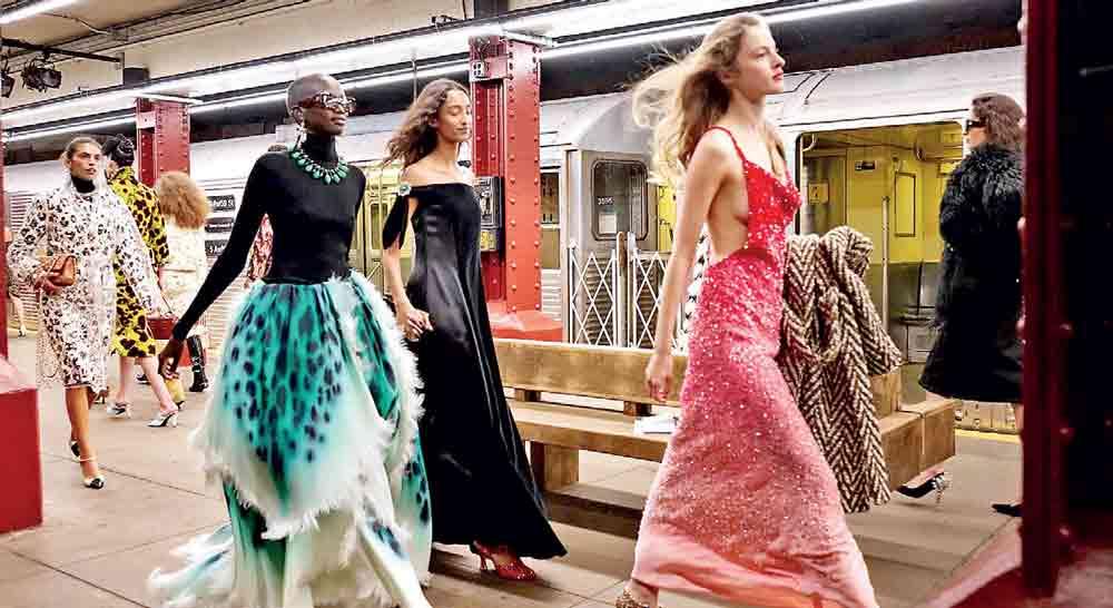 And the latest buzzed-about show of the season? The Métiers d’Art 2026 staged in an abandoned New York City subway platform - for Sri Lankan readers, imagine your local train station, rats optional. Models moved like commuters: a 70s journalist racing a deadline, an 80s businesswoman with a briefcase, a wide-eyed tourist in an “I NYC” tee, a classy older woman off to the opera, and yes, even Clark Kent sneaking his Superman emblem under a suit. They walked in and out of train cars or waited on platforms, reading newspapers, while leopard prints, beaded fish, candy-apple-red accents, Big Apple-inspired details, cat-head hats, dog motifs, and coffee cup handbags made appearances.