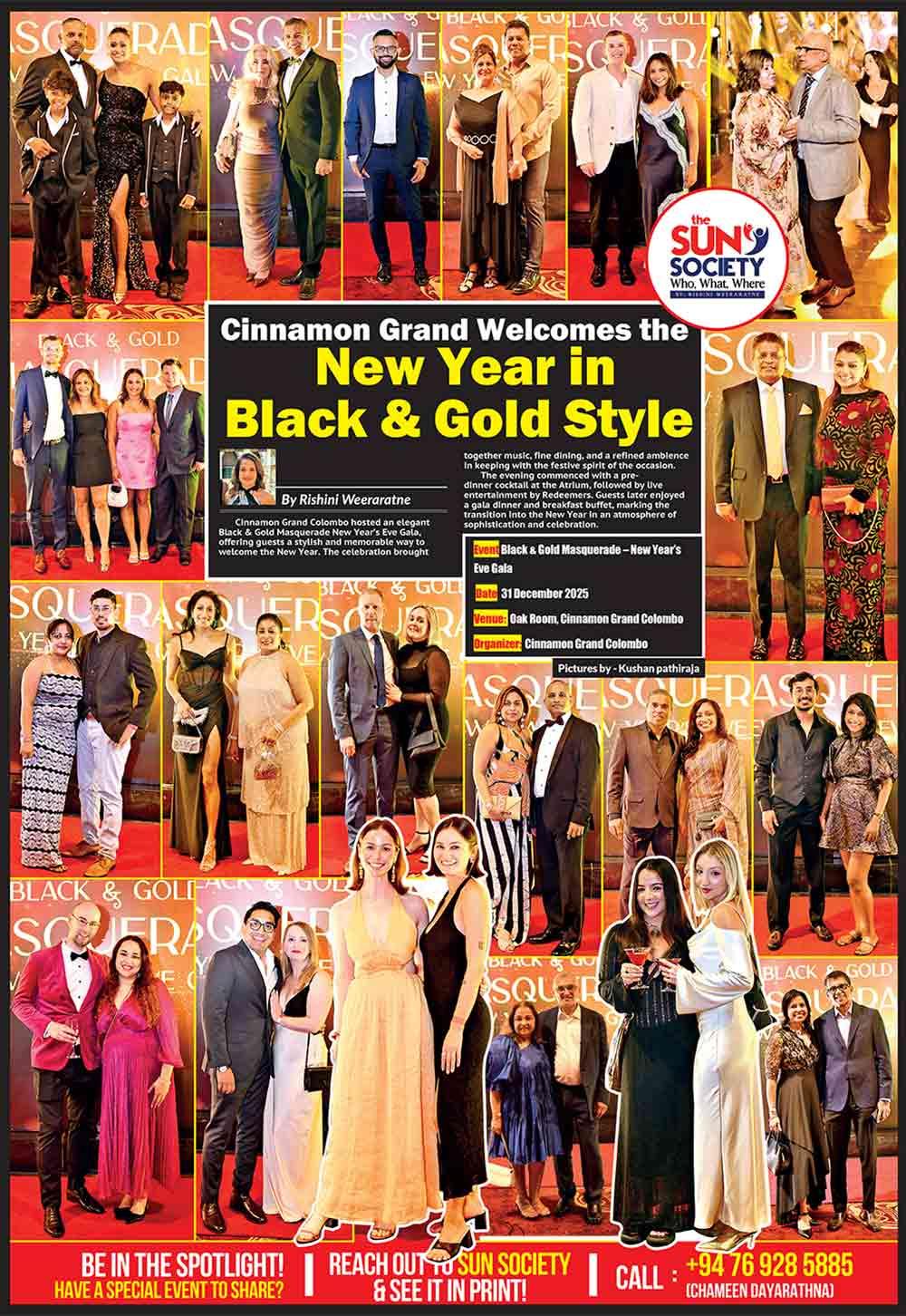 Cinnamon Grand Colombo hosted an elegant Black & Gold Masquerade New Year’s Eve Gala, offering guests a stylish and memorable way to welcome the New Year. The celebration brought together music, fine dining, and a refined ambience in keeping with the festive spirit of the occasion.