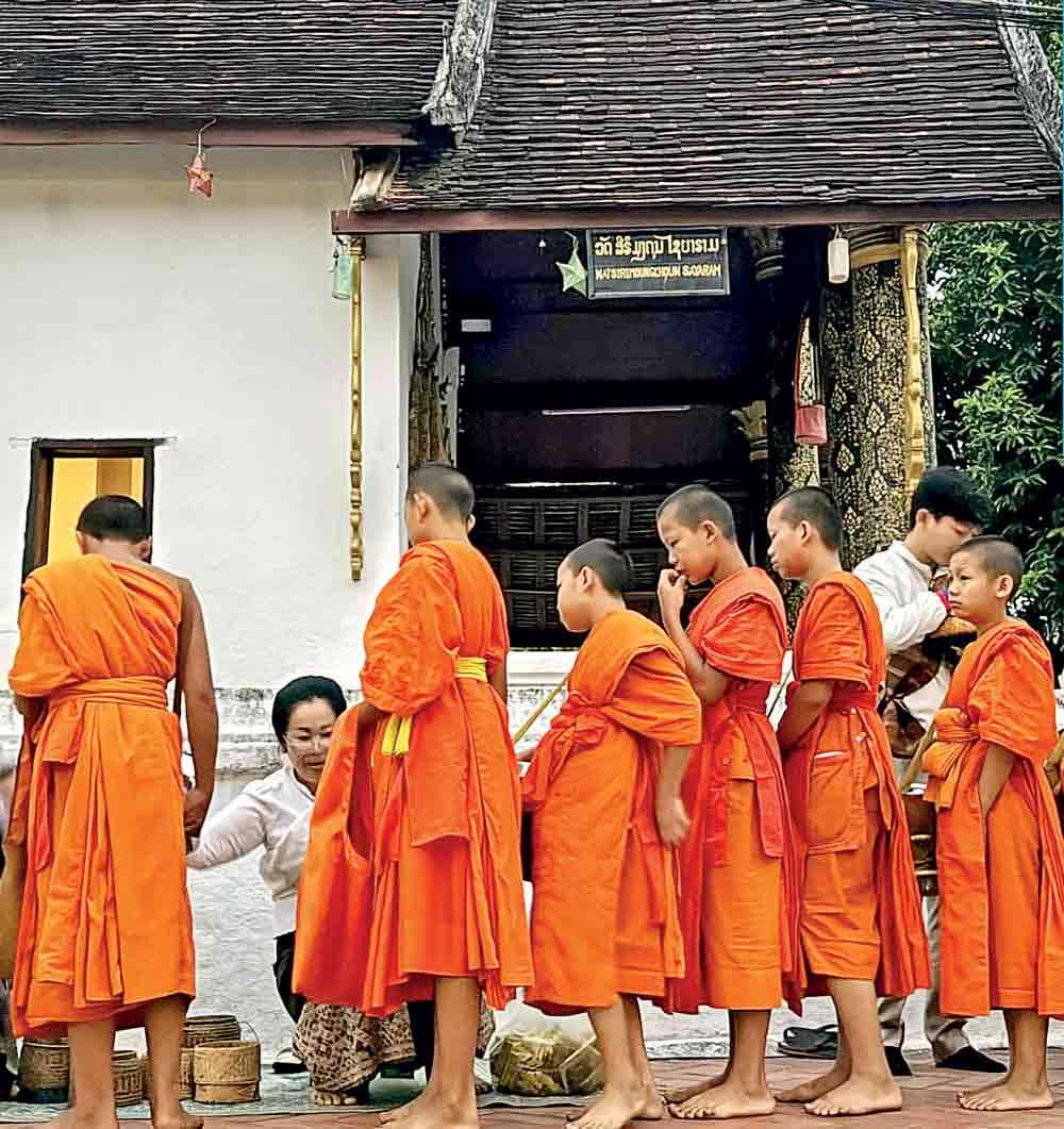 Nearly forty-five minutes later, the monks began to appear, slowly lining up along one side of the street. A drum sounded, rhythmic and solemn, signalling the start of the ceremony. And then, suddenly, the stillness fractured. Tourists surged forward to the rope, cameras raised, phones clicking, flashes firing. What should have been sacred became spectacle. The monks were no longer participants in a ritual, but subjects of observation. The discomfort was immediate. Where was the restraint? The reverence? The very qualities that give Luang Prabang its soul felt alarmingly easy to erode.
