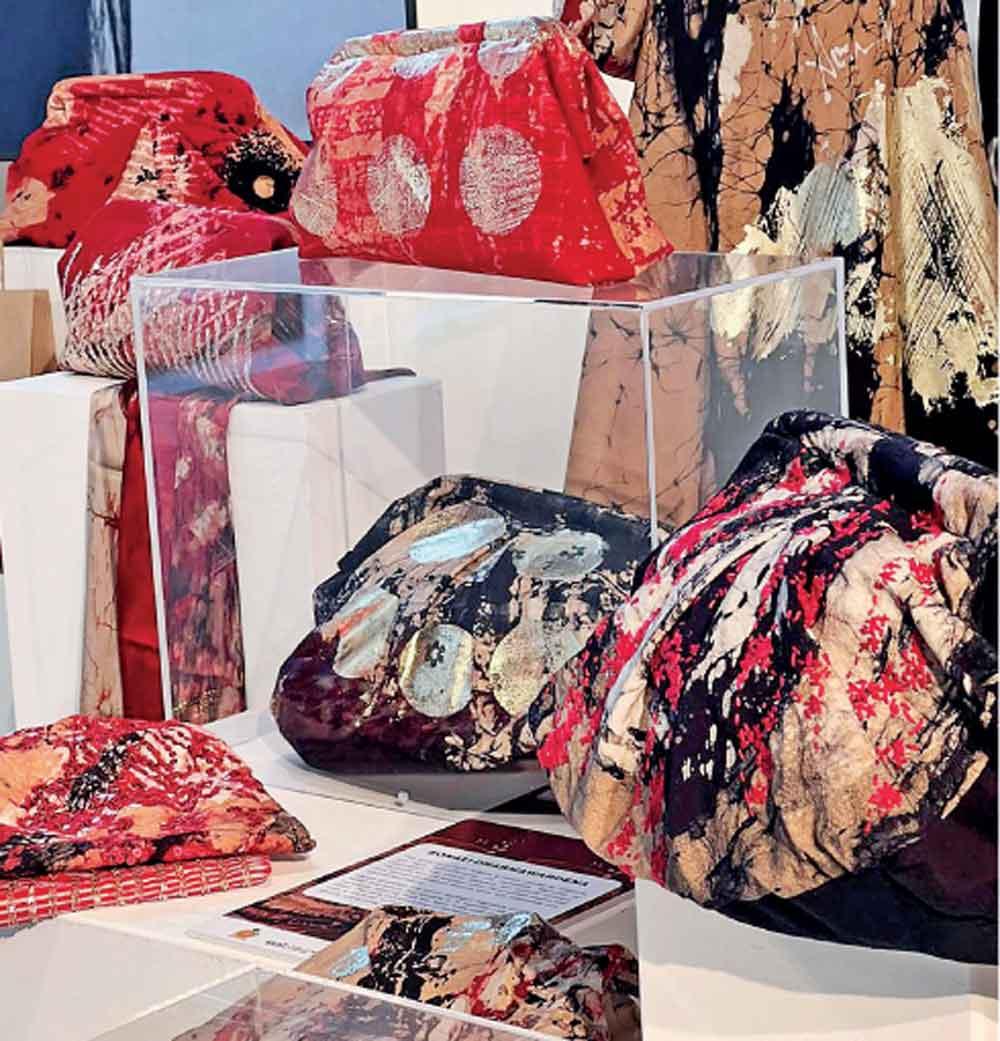 Displayed across walls and tables in London, her textiles read like garments in waiting. Fluid, expressive, and unapologetically tactile, the pieces carried a sense of movement even in stillness.