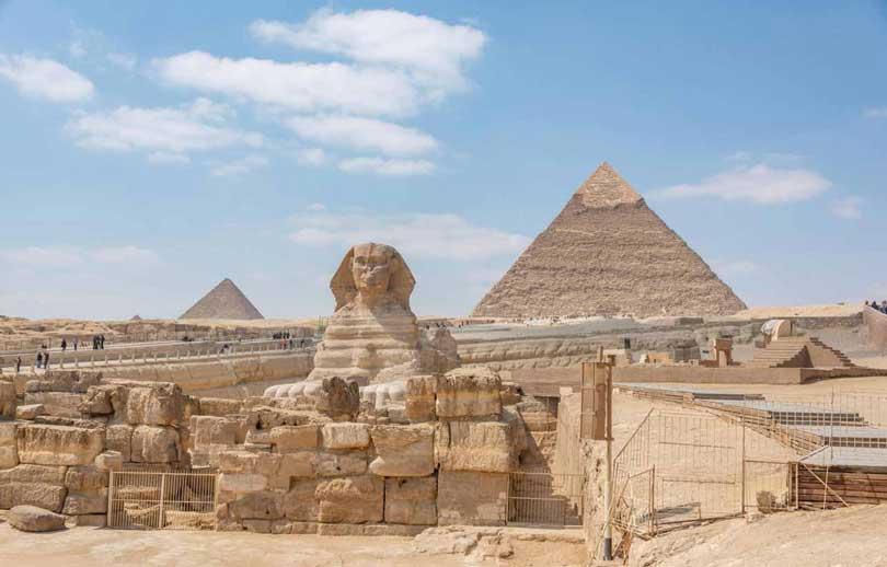 A short distance away, carved directly from a limestone outcrop, lies another symbol of Egypt’s eternal mystery the Great Sphinx of Giza. With the body of a lion and the face of a pharaoh (believed to be Khafre), the Sphinx gazes eastward toward the rising sun, as though watching over both life and death. At 73 meters long and 20 meters high, the Sphinx has endured millennia of wind, sand, and war. Its expression serene, proud, and unreadable has fascinated generations. Legends tell of secret chambers beneath it, hidden passages leading to the pyramids, and prophecies carved in forgotten tongues. Though many mysteries remain unsolved, one truth is clear: the Sphinx is the soul of Giza stoic, ancient, and eternal.