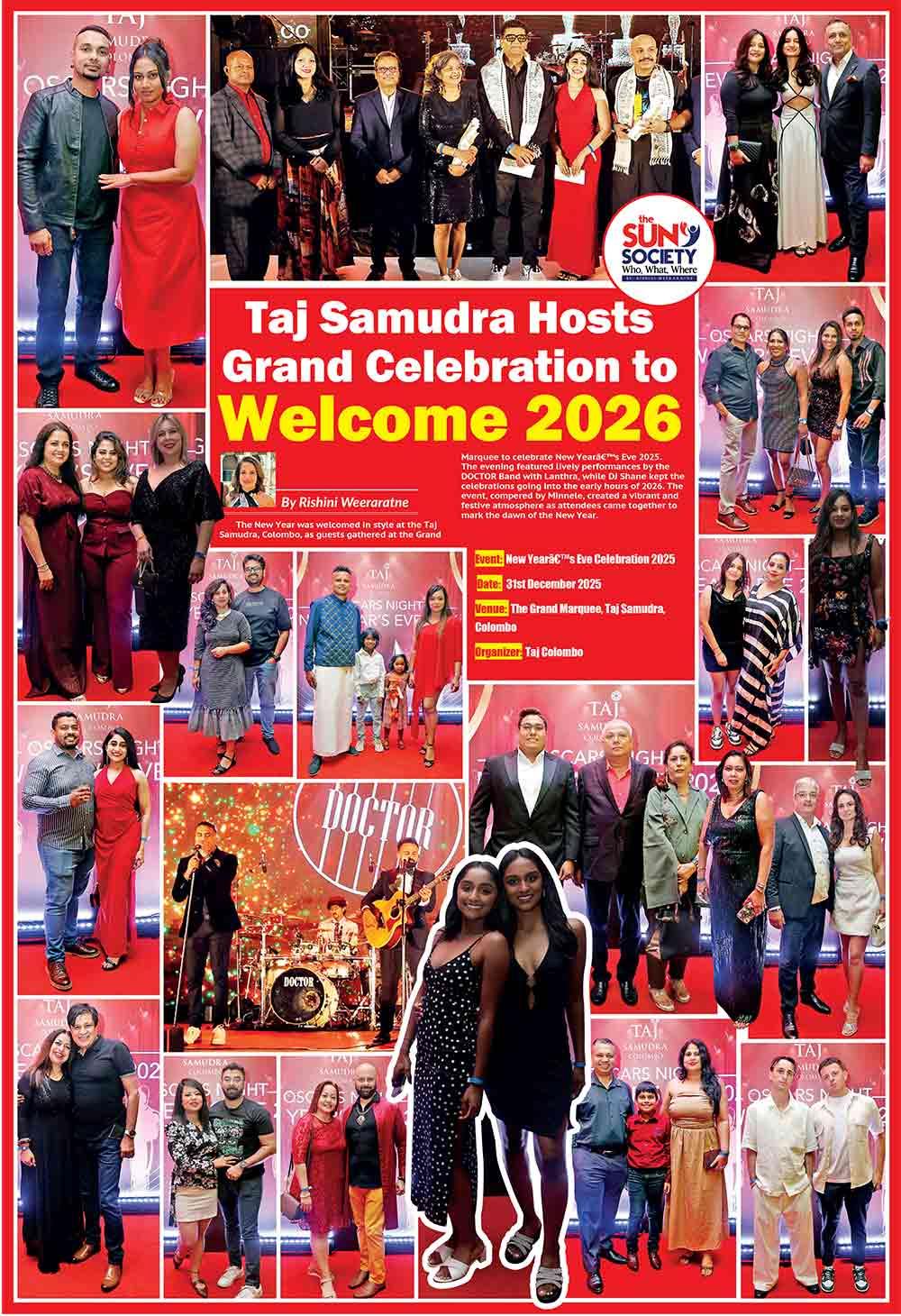 The New Year was welcomed in style at the Taj Samudra, Colombo, as guests gathered at the Grand Marquee to celebrate New Year’s Eve 2025. The evening featured lively performances by the DOCTOR Band with Lanthra, while DJ Shane kept the celebrations going into the early hours of 2026. The event, compered by Minnele, created a vibrant and festive atmosphere as attendees came together to mark the dawn of the New Year.