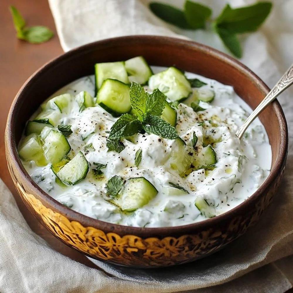 For something lighter, try cucumber and yogurt with a pinch of mint. The cool, crisp cucumber combined with creamy yogurt and aromatic mint is refreshing and unexpected, yet it works beautifully in salads or as a dip.