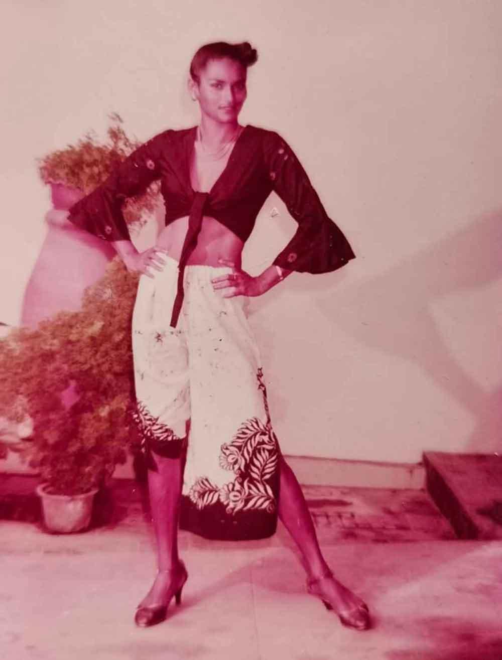 In the mid to late seventies and throughout the eighties our island had a groundbreaking and creative fashion industry that was producing extraordinary designs that were uniquely Sri Lankan. Entrepreneurs such as Ena de Silva, Sakuntala Rajagopal, Soma Udabage, Chrysanthi Fernandopulle, Buddhi Kirthisena and Swanee, were all pursuing their own individuality and creating a dazzling array of fashionable clothing. Batik and tie-and-dye was their chosen forms of expression. The model that many of them used to represent the vibrancy of their creative flair was none other than the sensational Akushla Sellayah.