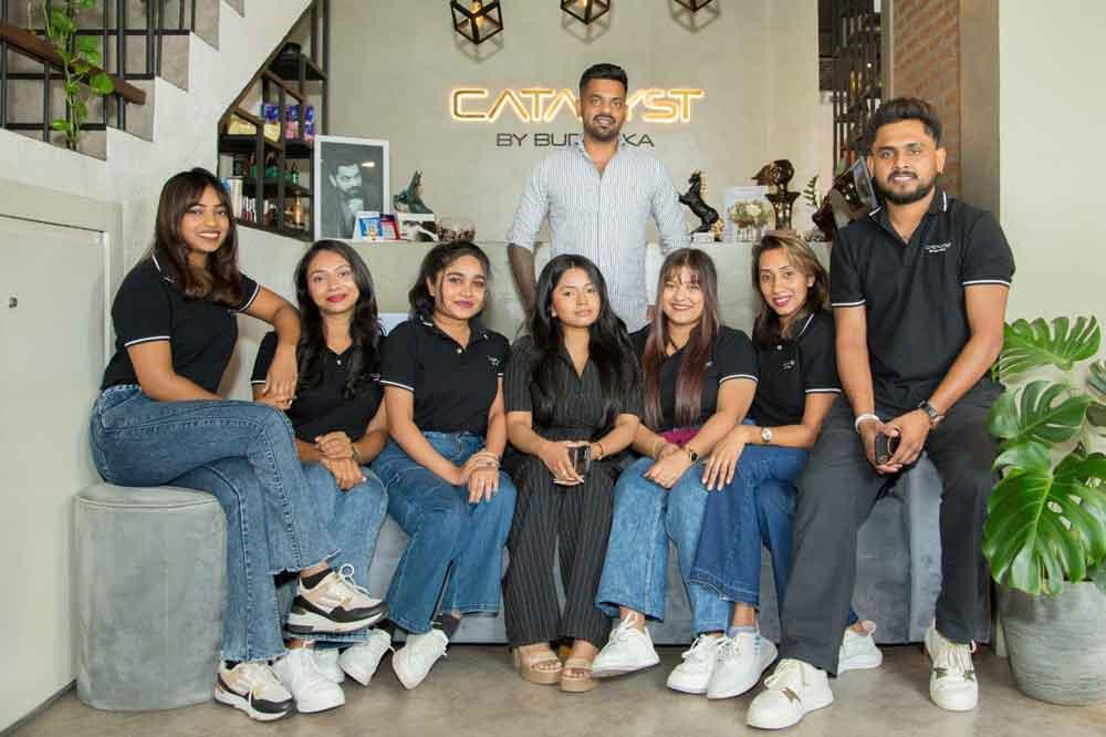 Before becoming the founder of Salon Catalyst, I was simply a “game kollek,” a village boy from Kegalle with big dreams and very humble beginnings. My journey did not begin in a salon; it started in a shoe shop in my hometown, where I worked during my early years. Right next to the shoe shop was a salon. I used to watch the stylists at work, the way they carried themselves, the creativity in their hands, and the way clients walked out with smiles on their faces. I admired them from a distance. There was something about that environment that always captured my attention. The salon belonged to a friend’s brother, and he noticed my interest. He encouraged me to seriously consider learning hair and beauty, not just as a hobby, but as a profession. That encouragement changed my life. Sometimes, all you need is one person who sees your potential before you see it in yourself. From there, I took a leap of faith. I moved to Kiribathgoda and later to Colombo 7, where I gained greater exposure and experience. Those years shaped me. I worked hard, learned discipline, refined my skills, and came to understand the true demands of the industry. Looking back, my journey was not glamorous, it was built step by step with patience, sacrifice, and belief. Every stage, from the shoe shop in Kegalle to the salons in Colombo, helped shape the person and professional I am today.