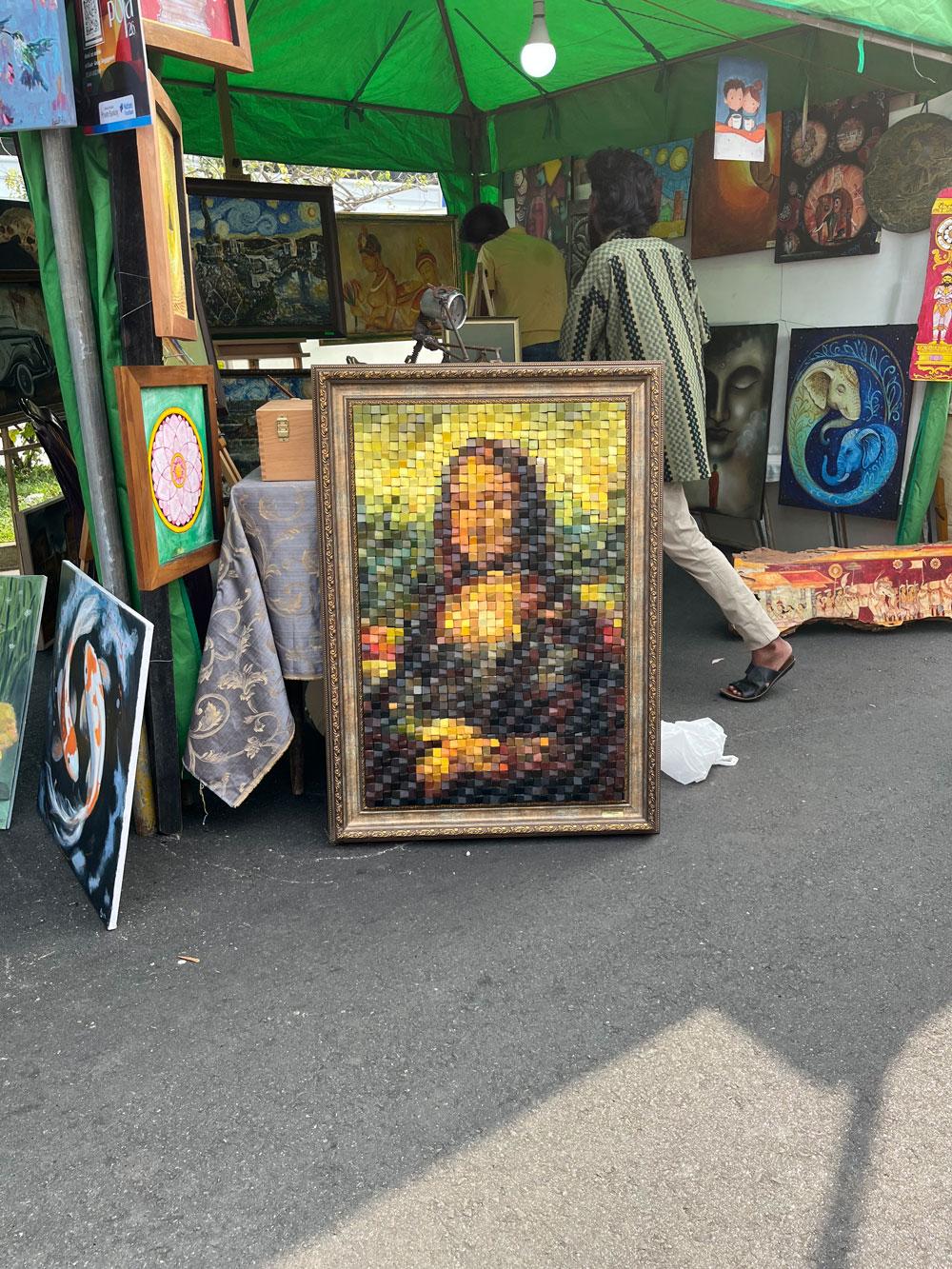 The inevitable question, particularly in a year of such scale, is whether Kala Pola 2026 showcased anything genuinely new. The answer is nuanced. Much of what was on display could be described as contemporary, or at least contemporary as it tends to manifest within Sri Lanka. There were familiar reinterpretations and stylistic echoes: the visual grammar of the ’43 Group adapted for modern interiors, Picasso filtered through local sensibilities, even the Mona Lisa appearing in a painted, wooden block variation. These works were polished, accessible, and unmistakably commercial. Ground-breaking, however, would be a generous description. From the consumer’s perspective, this consistency is precisely what makes Kala Pola compelling. It is one of the few spaces where original art can be acquired at relatively affordable prices, where a living room can be transformed without the intimidation of galleries or the exclusivity of auctions. Like Montmartre, it offers an experience as much as an exhibition - a day for those with a Sunday to spare to stroll, eat, talk, and absorb art without obligation. In this sense, Kala Pola succeeds admirably in democratising access. For artists, the commercial orientation of much of the work is less a creative compromise than an economic necessity. In an environment where experimentation is rarely rewarded financially, sticking to what is known to sell becomes a rational, even responsible choice.