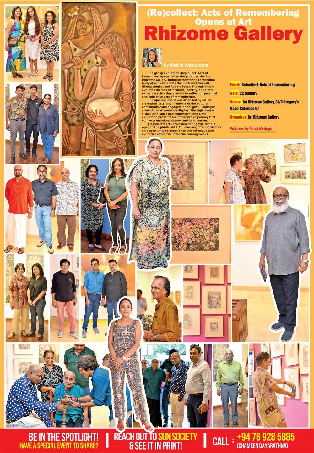 The group exhibition (Re)collect: Acts of Remembering opened to the public at the Art Rhizome Gallery, bringing together a compelling body of work by artists Nadine David, Seevali Illangasinghe, and Rubert Soysa. The exhibition explores themes of memory, identity, and lived experience, inviting viewers to reflect on personal and collective acts of remembering.