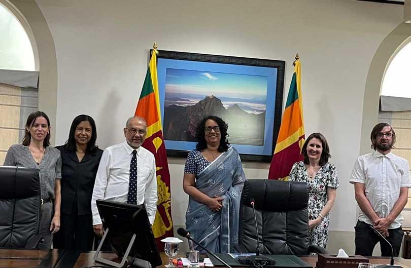 - Members of the Samutthāna and King’s College London teams with Dr Harini Amarasuriya, Prime Minister of Sri Lanka, during a discussion.